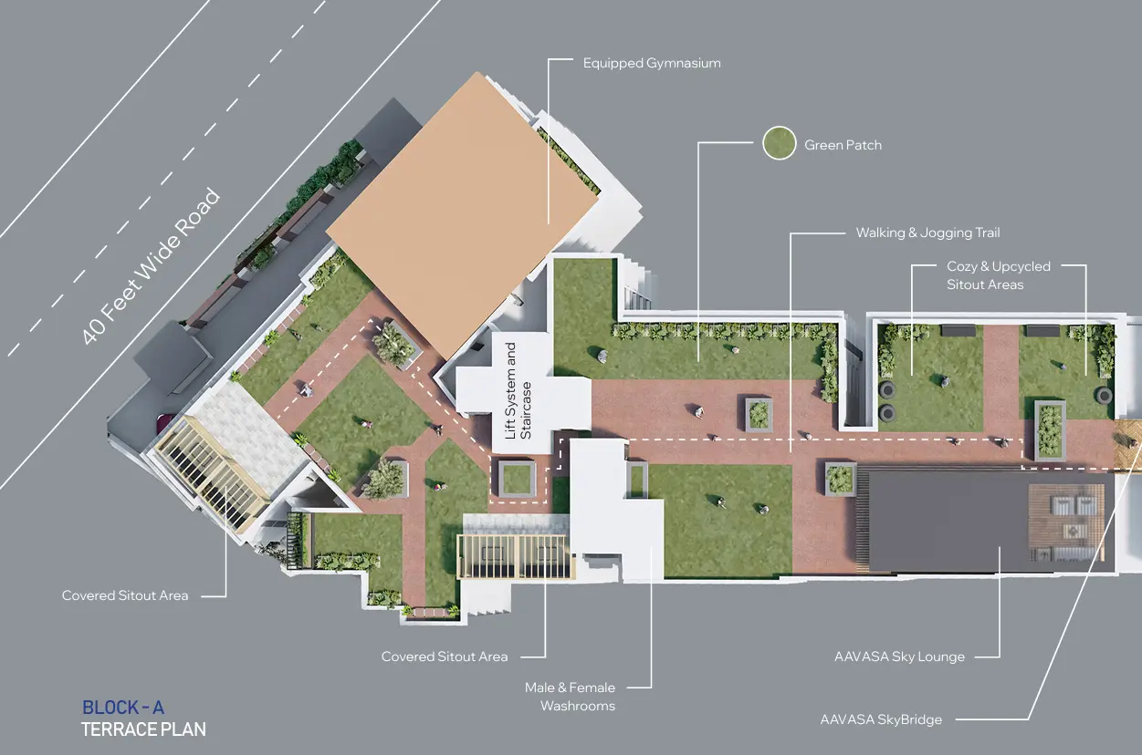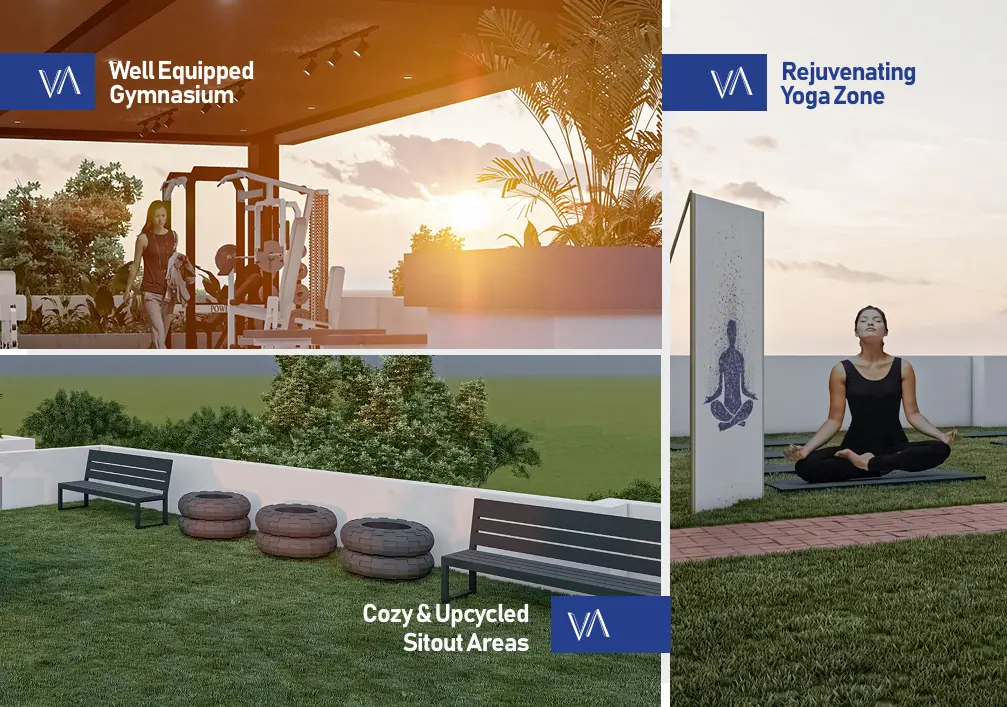 Dedicated yoga zone, with lush green grass designed for relaxation and mindful meditation.